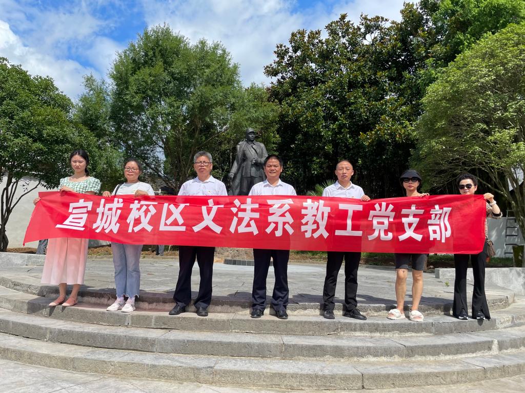 为了进一步增强党员党性修养,大力弘扬伟大建党精神,在建党101周年前夕,学院文法系教工党支部于6月22日赴泾县云岭新四军军部旧址和王稼祥纪念馆开展“追寻红色记忆,坚定理想信念”主题党日活动。联系本支部的宣城校区学生工作办公室主任盛义保,以及支部教师党员一同参加了此次活动。