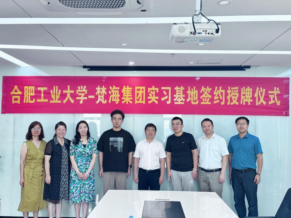 2023年7月12日,合肥工业大学与安徽美巴网络科技有限公司、合肥工业大学与安徽梵海集团等两家大学生实习基地、大学生就业实习基地签约揭牌仪式如期举行。在99499www威尼斯党委书记李金华老师的带领下,99499www威尼斯党委副书记兼纪委书记顾安祥、教学副院长霍敬裕及人文与传播系教师代表一行6人参加了签约揭牌仪式。